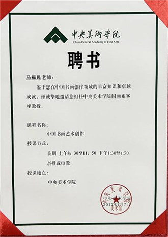 2017年马福民被中央美术学院国画系聘请为客座教授;