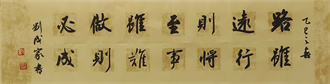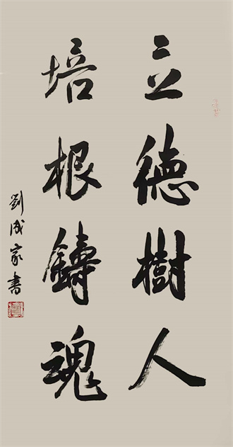 刘成家,男,1978年生,河北唐县人。自幼酷爱书法,学书从楷书入,手,后苦心习临古今名人碑刻书帖,其作品以见自家面目。笔力遒劲、结体秀美、章法得体。作品多次在《保定日报》、《 保定晚报》、《河北工人日报》、《石家庄日报》、《河北工运》等报刊发表,其作品著入《国际书画家精品集》、《情融丹青》 、《唐河文学》 等书籍,曾获“2008年国际书法美术摄影作品大奖赛”金奖。很多作品到日本、香港、新加坡等国家和地区交流。现为中国书画家联谊会会员、河北省书法家协会会员、保定市书法家协会会员、保定市书法家艺术研会副秘书长,保定市硬笔书法家协会理事、保定市竹林书画社会员、河北省唐县文物收藏协会会员。2015年10月3日举办的书法展于10月9日在保定电台书画新闻节目播出。2023年被评为最美唐县人荣誉称号,2023年被评为唐县第九届道德模范称号。保定市道德模范,2024年被评为保定市文明市民荣誉称号。